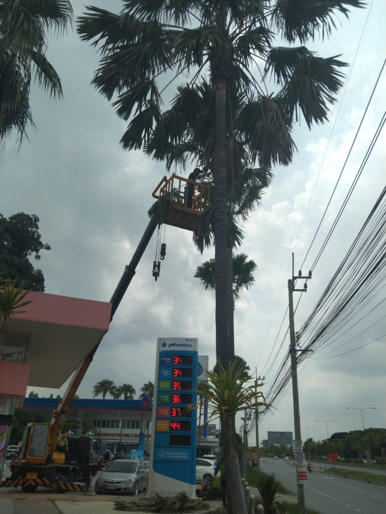ตัดโค่นต้นไม้ ที่มีขนาดใหญ่หรือเป็นอันตราย เช่น เอียงใกล้ล้ม รากยึดไม่แน่น หรือรบกวนอาคาร