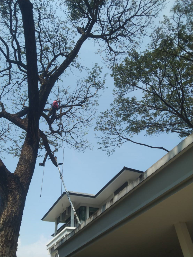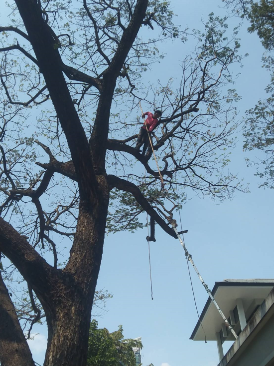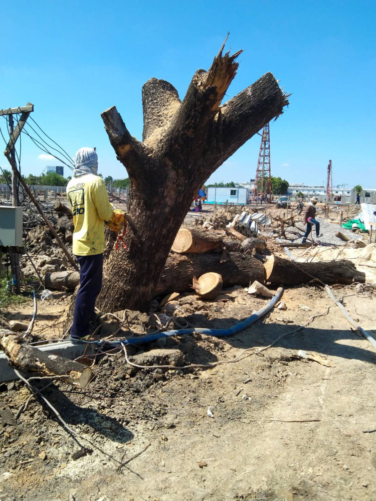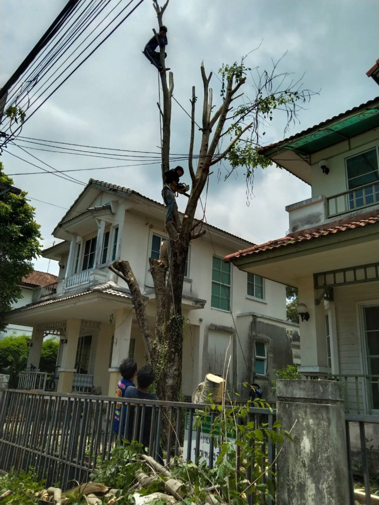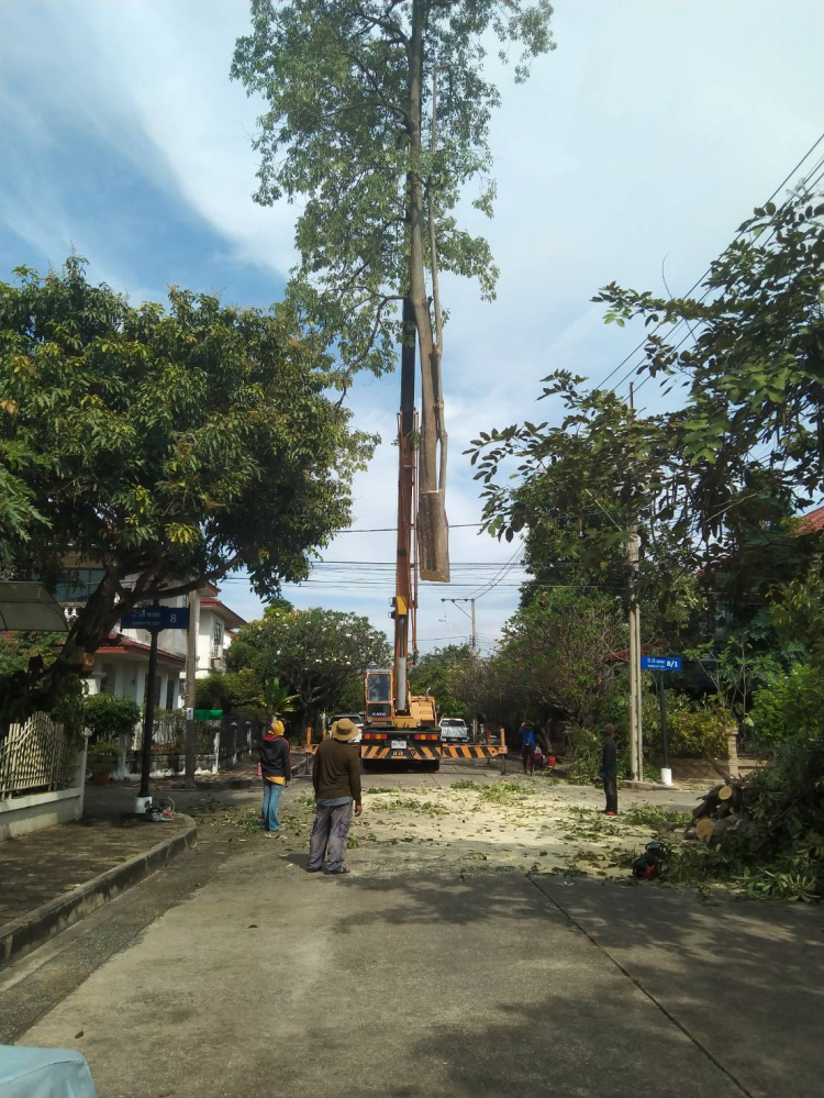 ตัดโค่นต้นไม้ ที่มีขนาดใหญ่หรือเป็นอันตราย เช่น เอียงใกล้ล้ม รากยึดไม่แน่น หรือรบกวนอาคาร